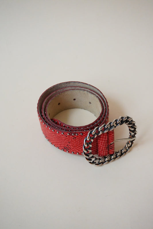 Vintage Red Reptile Chain Buckle Studded Belt