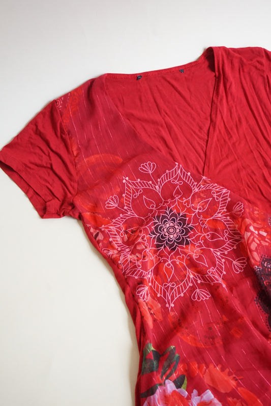 Desigual Red Y2K Mini Bodycon Floral Sheer Printed Overlay Dress - Size Medium