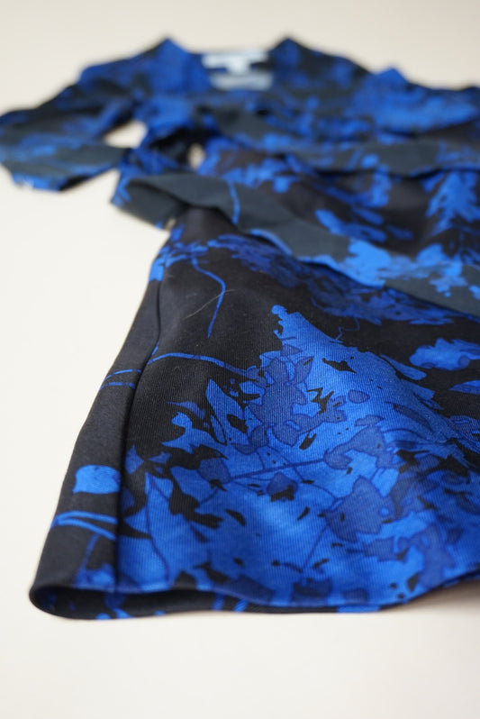 Diane Von Furstenberg Valerie Blue / Black Silk Blend Wrap Dress - Size 6