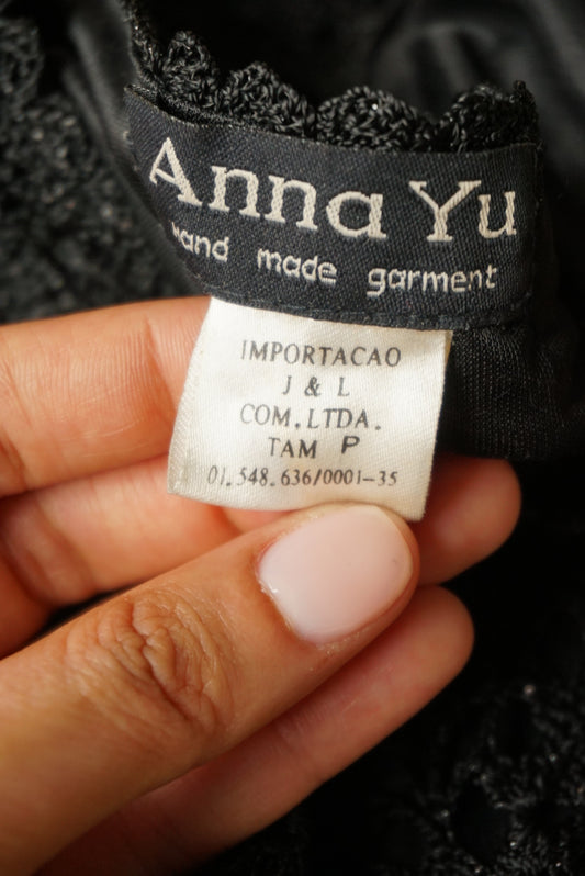 Anna Yu Vintage Y2K Lace Crochet Slip Black Dress - Size Small