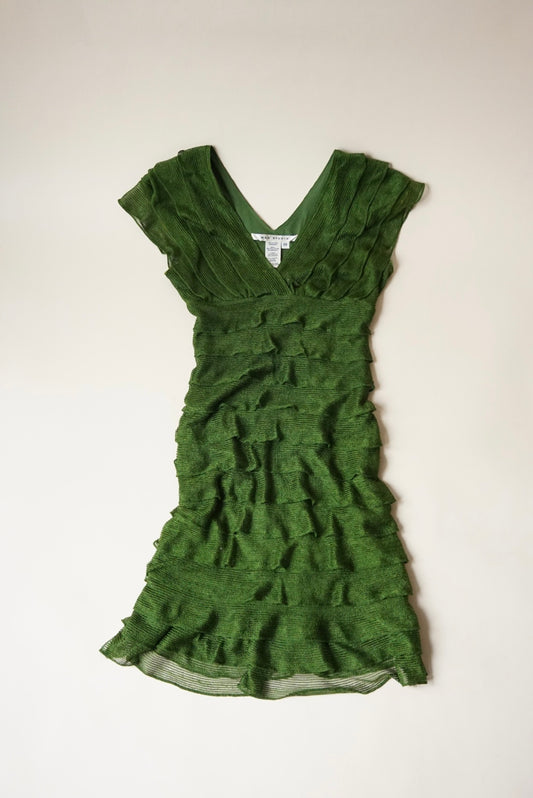 Max Studio Vintage Green Ruffle Midi Plunge Dress - Size XS