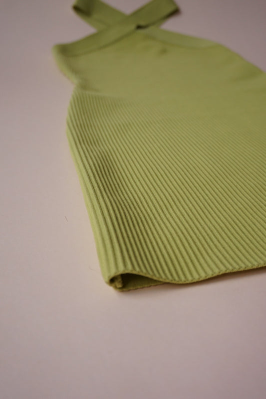 Sincerely Jules Ribbed Knit Lime Green Halter Dress - Size Small