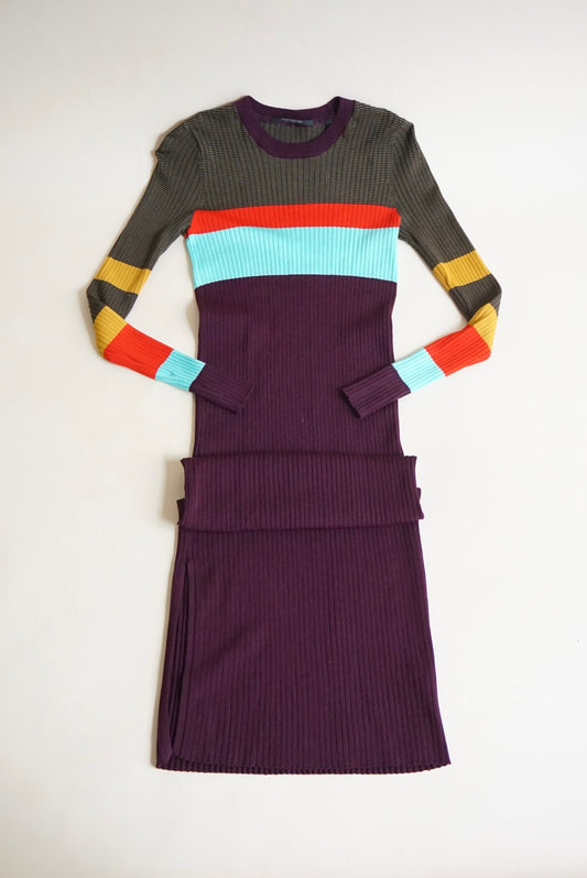 Scotch & Soda Ribbed Knit Color Block Crew Neck Rugby Style Bodycon Dress - Size XS
