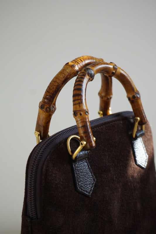 “Gucci” 80’s Brown Suede Mini Vintage Bamboo Handbag