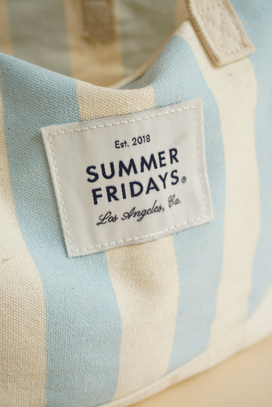 Summer Fridays Limited Edition Canvas Blue Striped Mini Tote