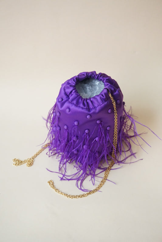 Zara Purple Feather Bucket Drawstring Mini Evening Bag - NWT