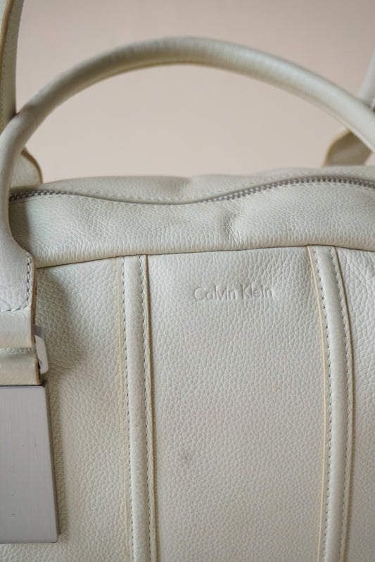 Vintage Calvin Klein Ivory Leather Bowling Bag