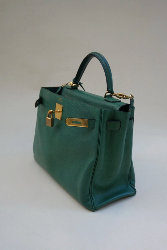 Hermes Vintage Kelly 28cm Kelly Green/Vert Vertigo Epsom Leather GHW 1991