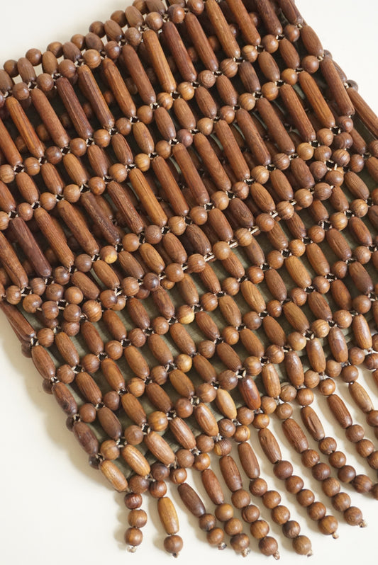 Handmade Brown Wood Beaded Flap Shoulder Bag