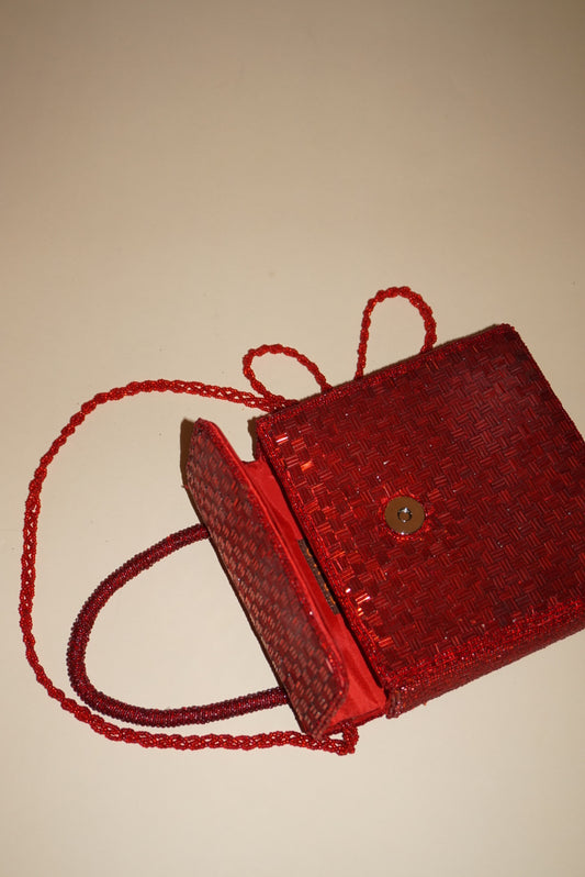 Vintage Ermo Red Beaded Top Handle Bag