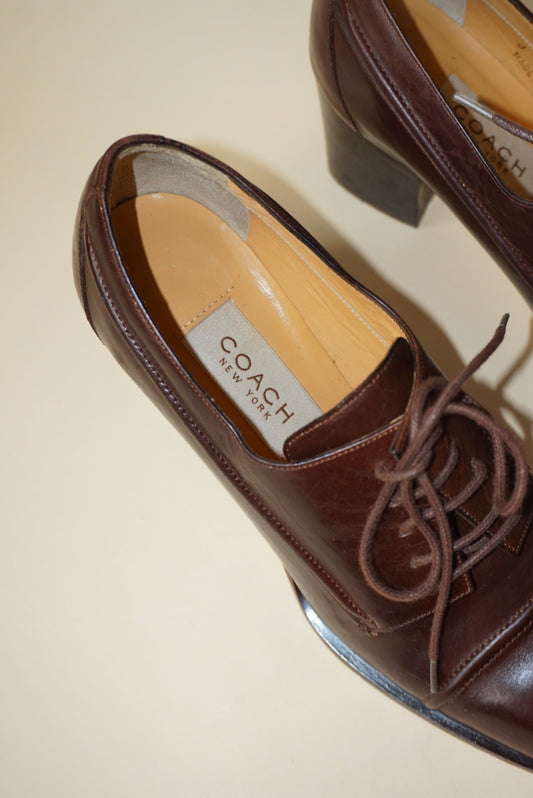 "Coach" Brown Leather Oxford Cap Toe Lace Up Heel Pump - Size 6.5