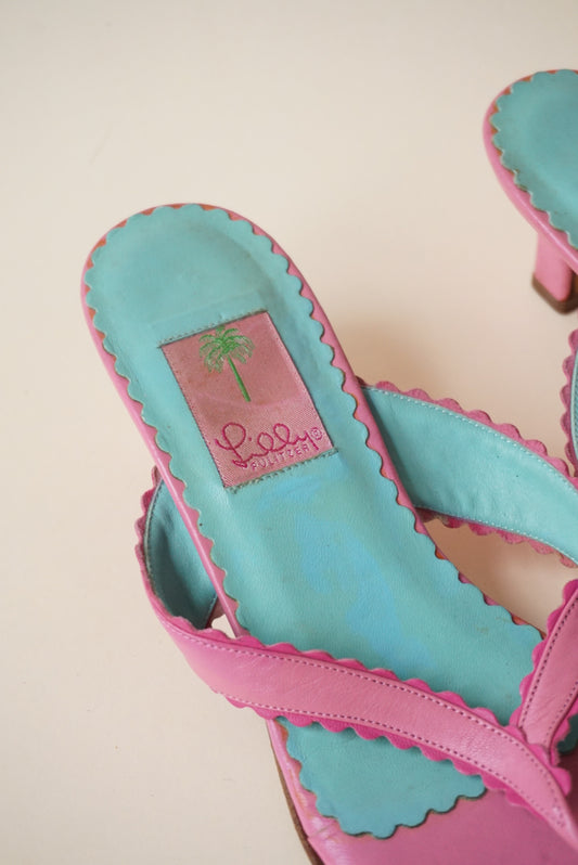 Lilly Pulitzer Pink Thong Scallop Kitten Heel - Size 10