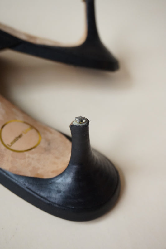 Shock Vintage Columbian Made Leather Ring Square Tan Toe Y2K Heels - Size 37