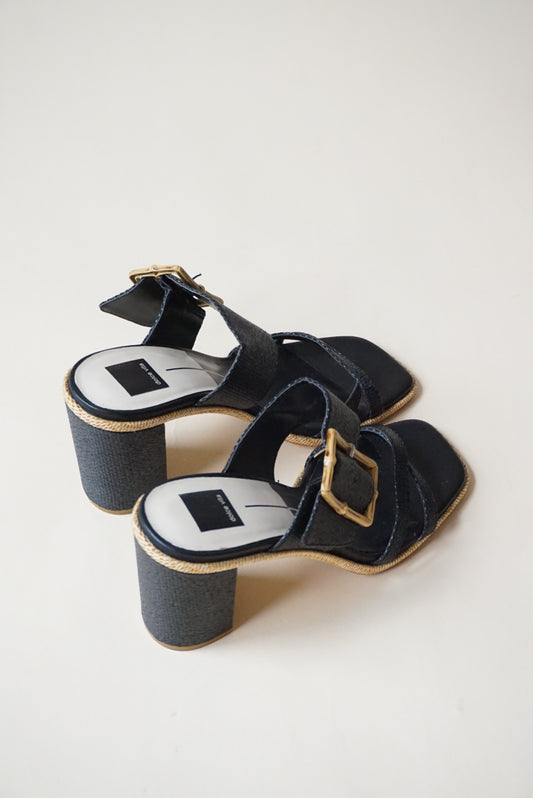 Dolce Vita Onnie Raffia Bamboo Block Open Toe Sandal Heel - Size 10