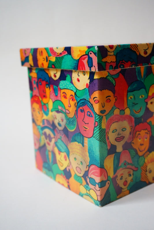 Vintage 1990s F.R. Industries Colorful People Tissue Box Cover Plastic 5.5"