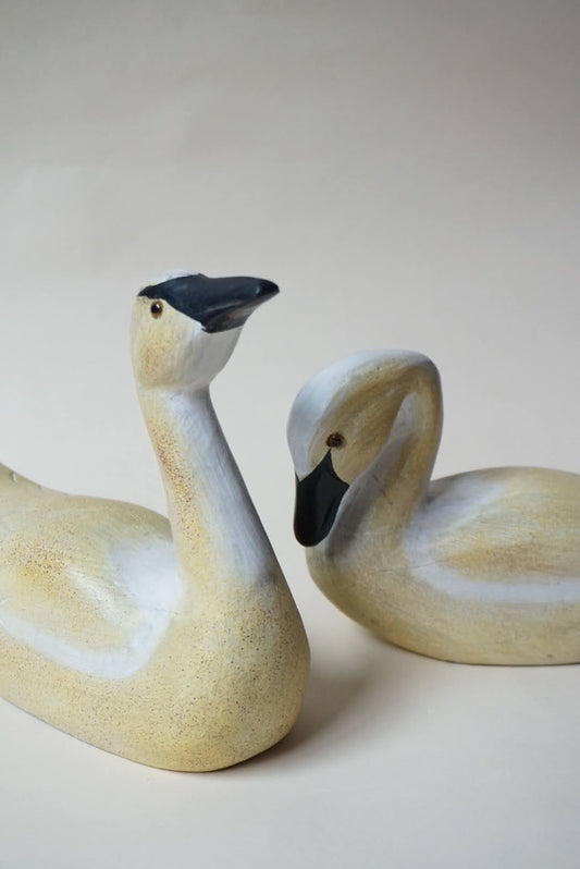 Vintage Primitive Folk Art Wood White Pair Hand-Carved Swan Decoy Sculptures Set (2)