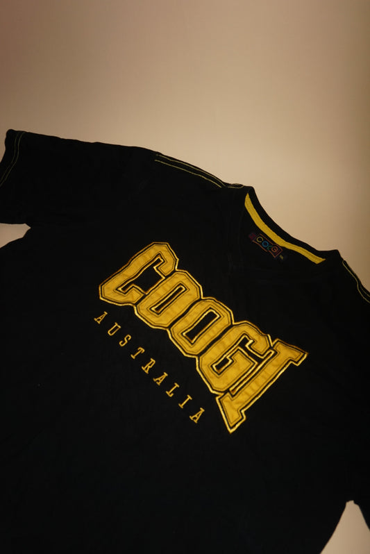 Coogi Men's Australia Y2K Black/Yellow Applique Embroidered Top - Size XXL