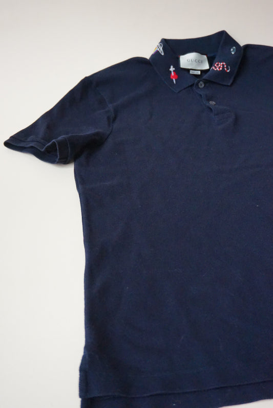 Gucci Men's Navy Embroidered Collar Detail Polo - Size XXL