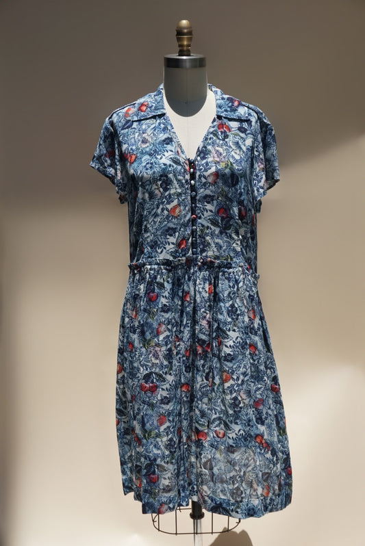 • "See By Chloe" Crepe Fruit Art Midi Dress Waist Tie Dress - Size 40