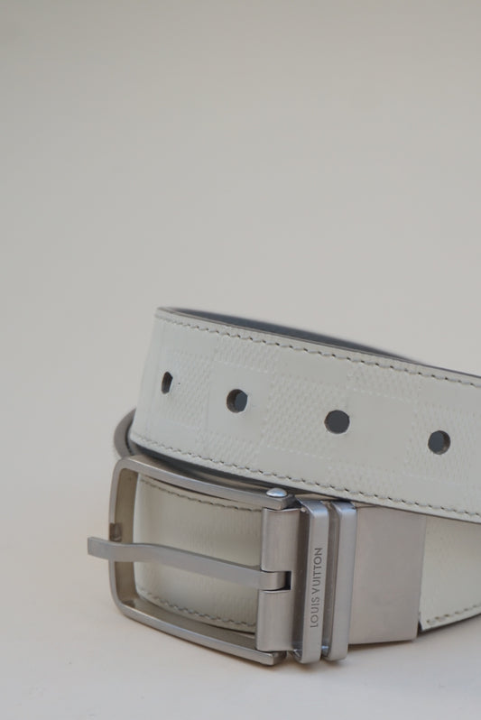 “Louis Vuitton” White Damier Infini Leather Boston Reversible Belt - Size 100/40
