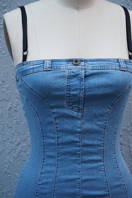 “Dolce & Gabbana” 90’s Denim Bustier Corsetry Cutout Dress - Size 40