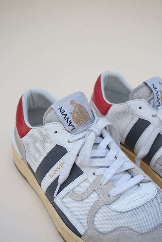 “Lanvin” White/Red/Navy Mesh Clay Sneakers - Size 45