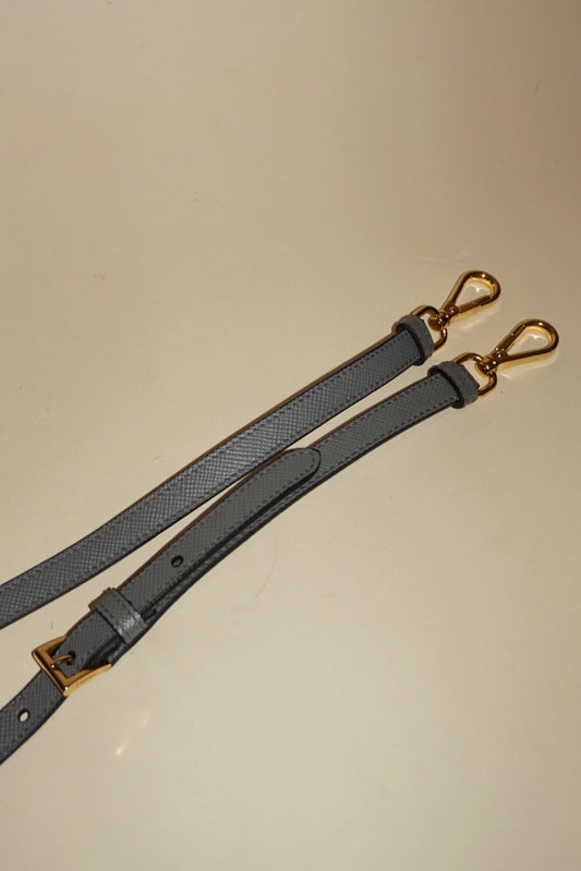 "Prada" Grey Saffiano Leather Gold Hardware Handbag Adjustable Strap