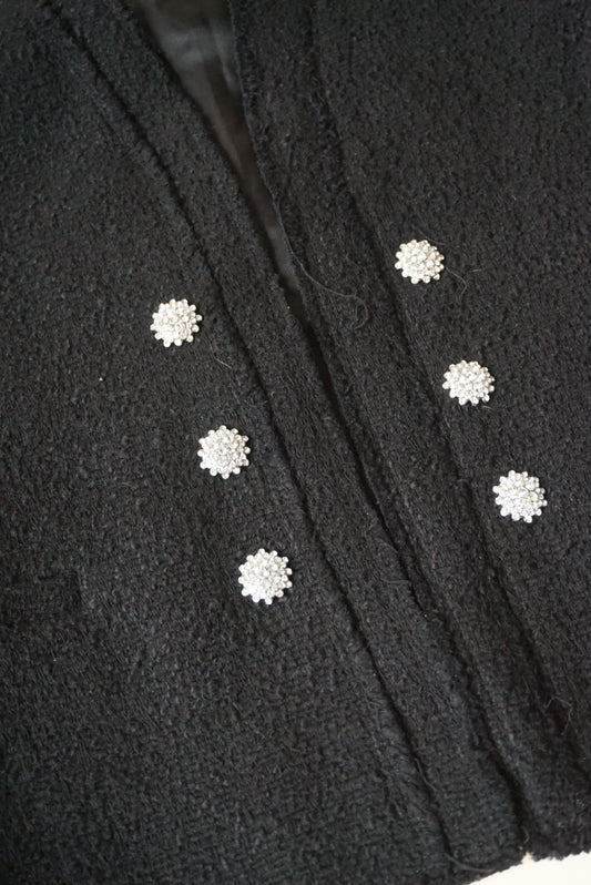 Zara Boucle Tweed Black Rhinestone Button Blazer - Size Small
