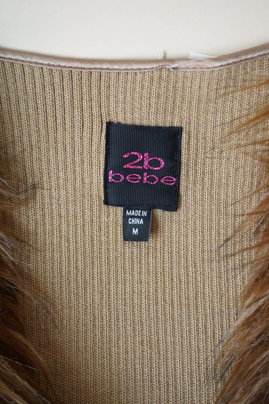 2B Bebe Faux Fur Brown Ribbed Knit Vest - Size Medium