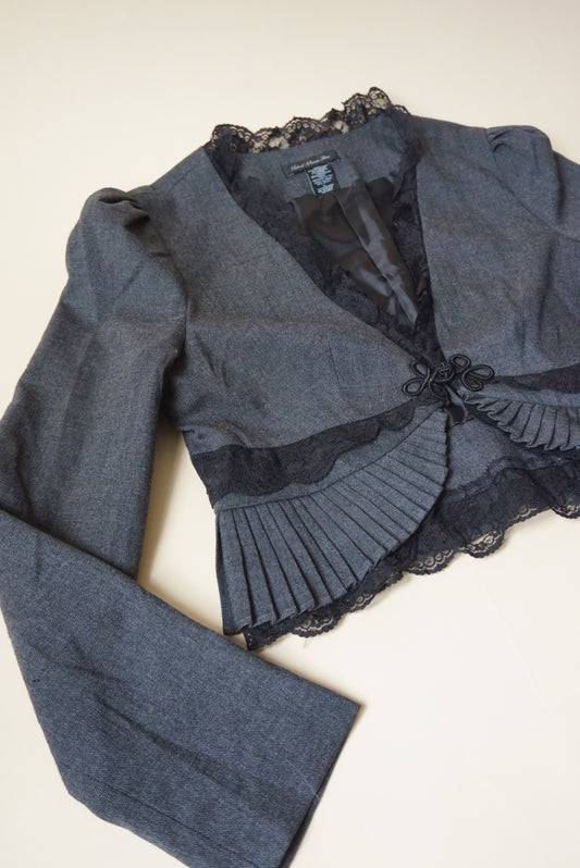 Y2K Heart Moon Star Grey Lace Pleated Blazer - Size Large