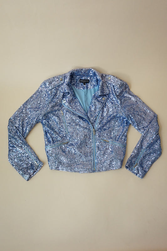 Generation Love Robin Blue Sequin Biker Jacket - Size Medium