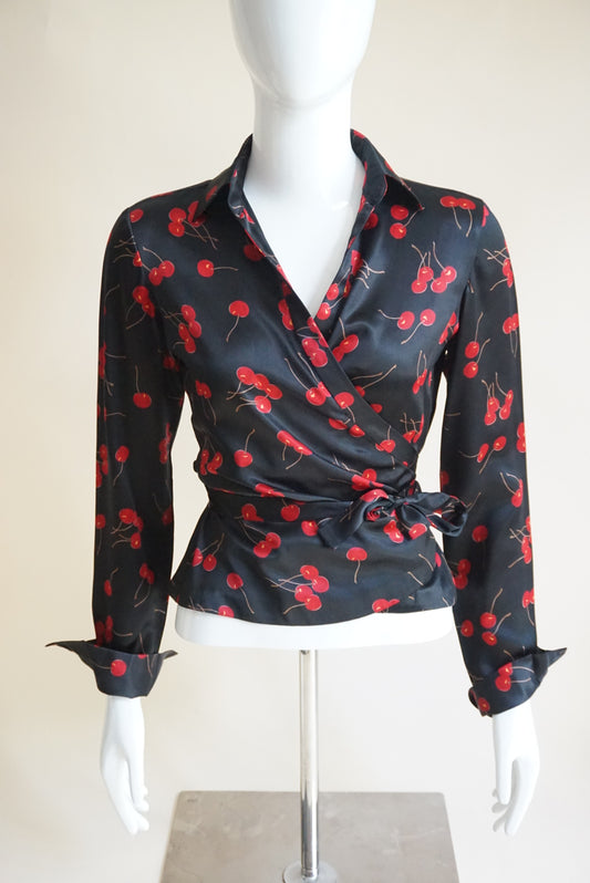 City DKNY Vintage Cherry Silk Wrap Top - Size 2