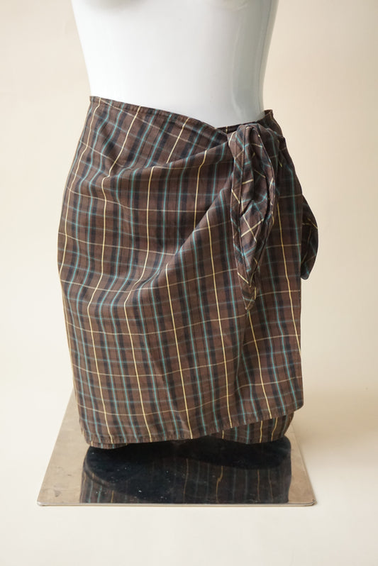 Vintage Kors Michael Kors Bergdorf Goodman Brown Plaid Wrap Skirt - Size 4