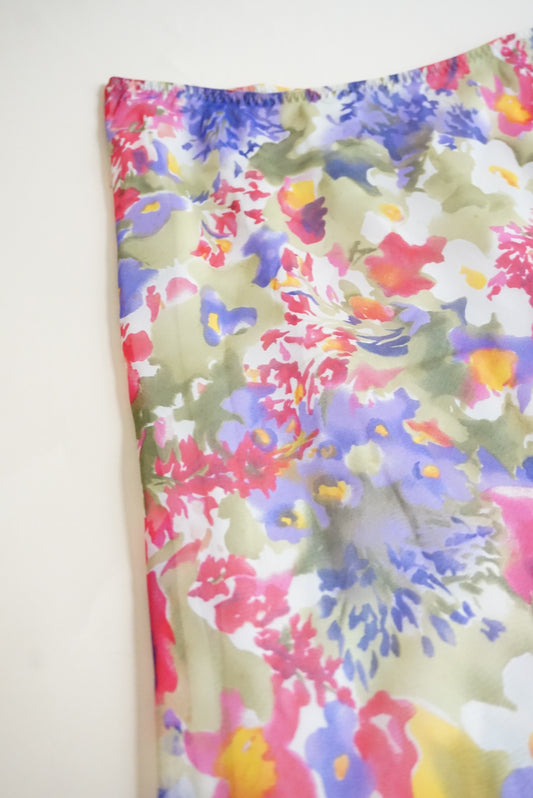 Anna and Frank Petite Vintage Floral Pastel Silk Midi Skirt - Size Petite Small