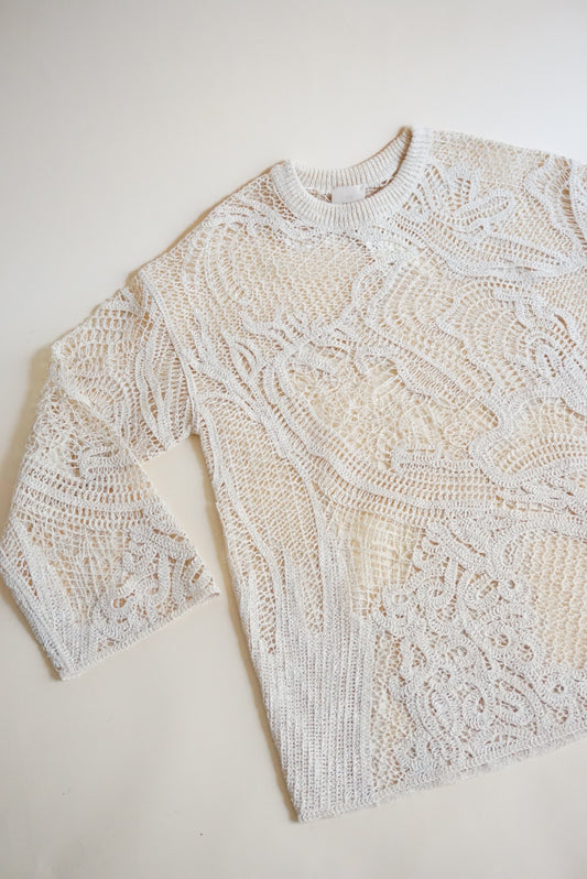 H&M Open Crocheted Ivory Wool Blend Tunic - Size Small
