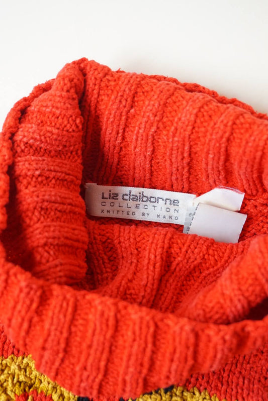 Vintage Liz Claiborne Collection Silk Baroque Scroll Motif Knit Sweater - Size Large
