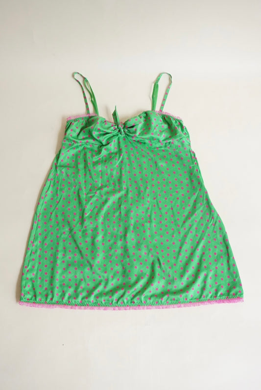 Pout Victoria's Secret Y2K Pink & Green Lace Trim Polka Dot Blouse - Size Medium