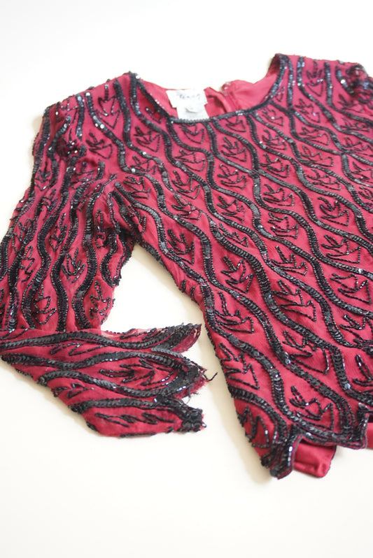 Stenay Vintage Silk Burgundy Beaded Scalloped Hem Blouse - Size Medium