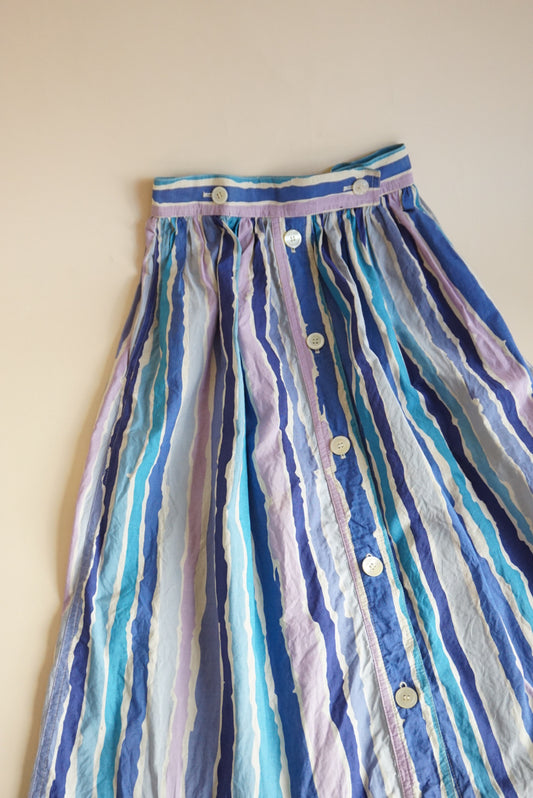 Saint Laurent Rive Guache 70's-80's Vintage Cotton Striped Skirt - Size 38