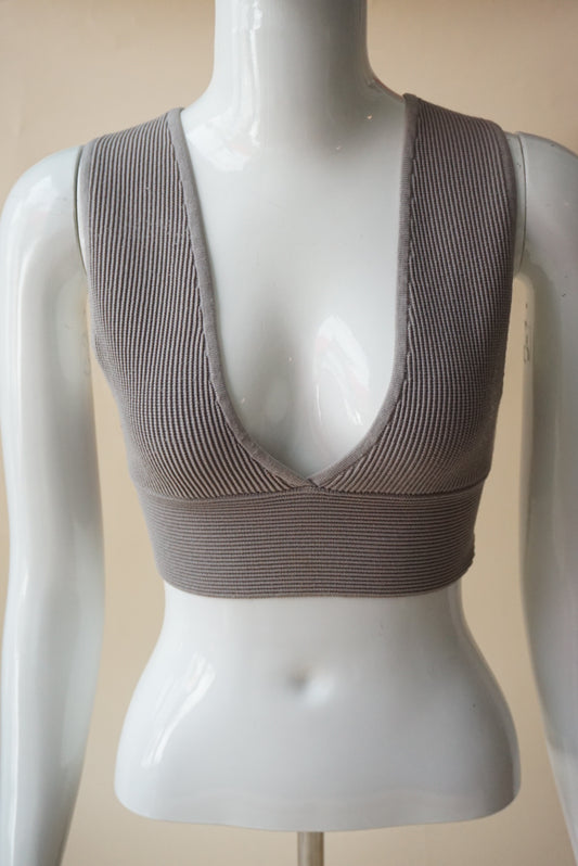 Babaton Aritzia Carlotta Sculpt Grey Ribbed Knit Plunge Cropped Top - Size Small