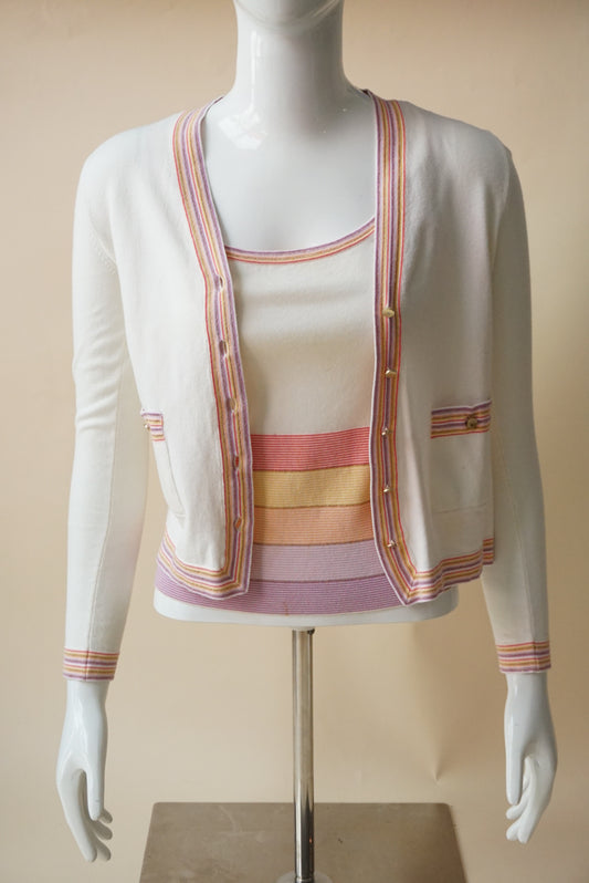 Les Copains Striped Ivory Vintage Pastel Cardigan Set - Size 40 IT
