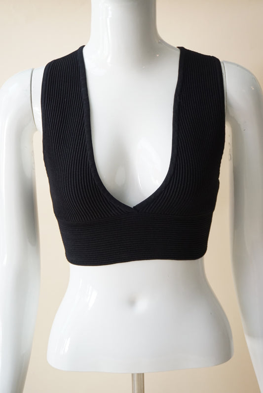 Babaton Aritzia Carlotta Sculpt Black Ribbed Knit Plunge Cropped Top - Size Small