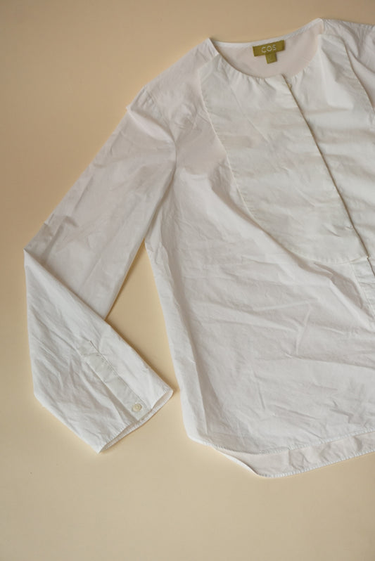 COS White Button Front Bib Panels Long Sleeve Blouse - Size 10