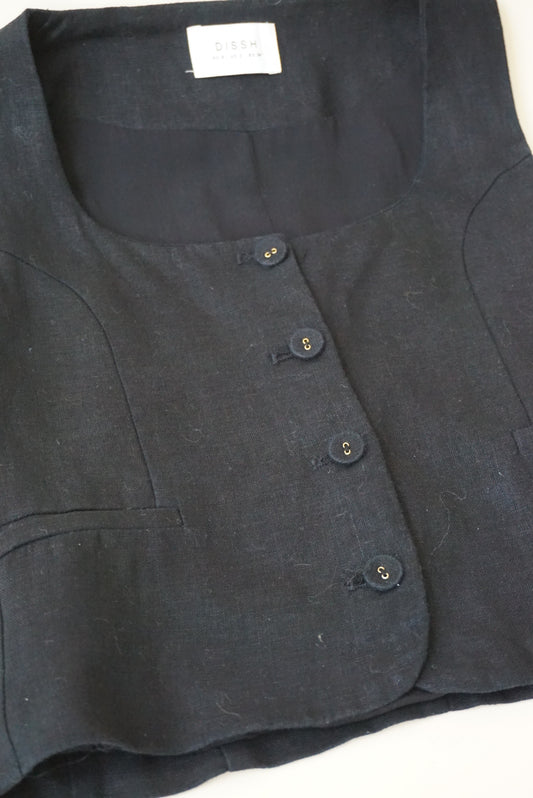 DISSH Scoop Neck Linen Black Vest Top - Size 2