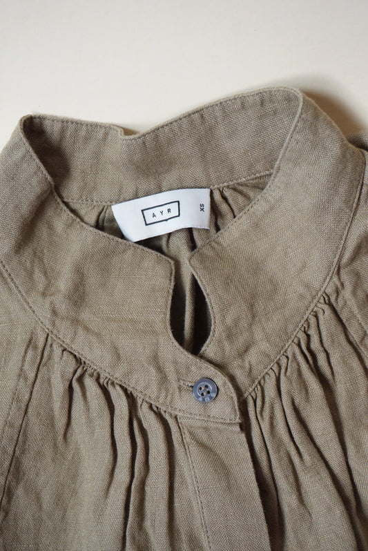 "Ayr" Irish Linen "The Bloom" Button Down Mandarin Collar Blouse - Size XS