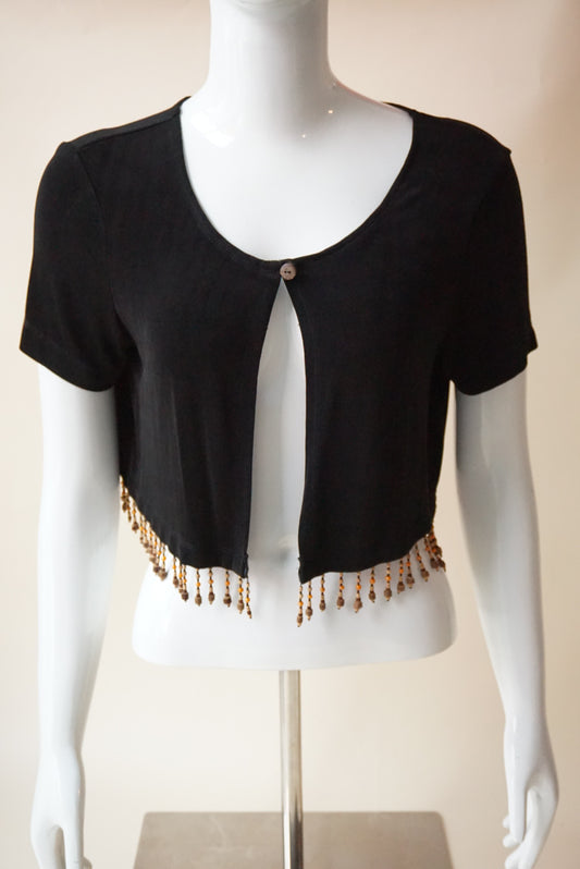 Carole Little Black Vintage Beaded Hem Cardigan - Size 10