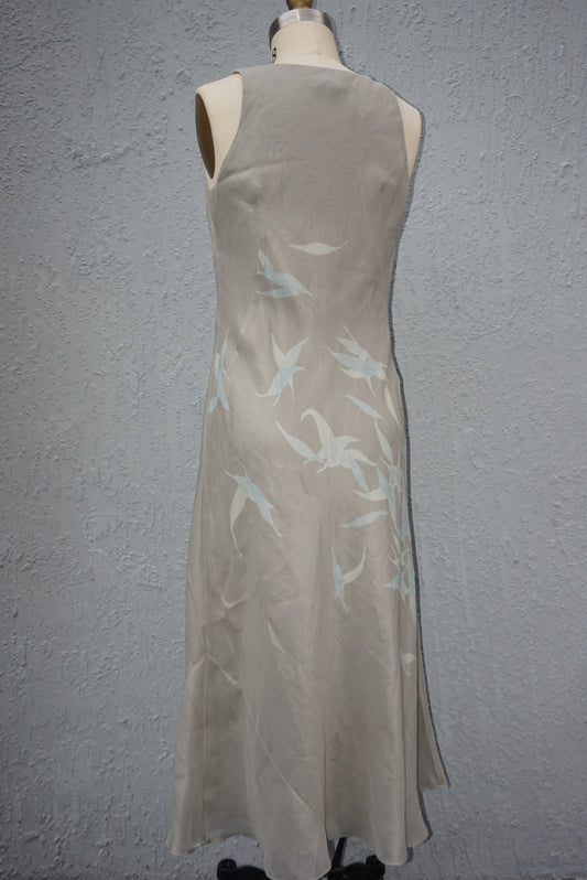 "Banana Republic" Vintage Spring Summer 2000 Grey Bird Design Sleeveless Maxi Dress - Size 8