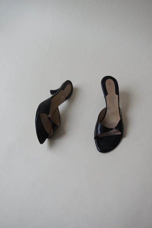 "Versace" Vintage Reptile Brown Open Toe Kitten Heels - Size 40