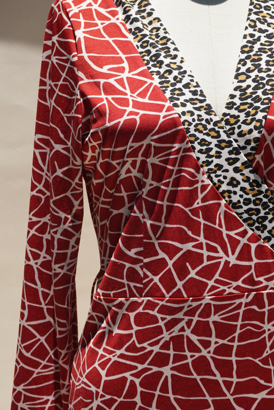 "BCBGMAXAZARIA" Vintage Stretch Animal Print Wrap Dress - Size XL