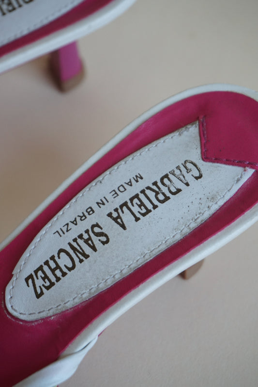 “Gabriela Sanchez” Vintage Leather Pink Sandal Kitten Heels - Size 6.5